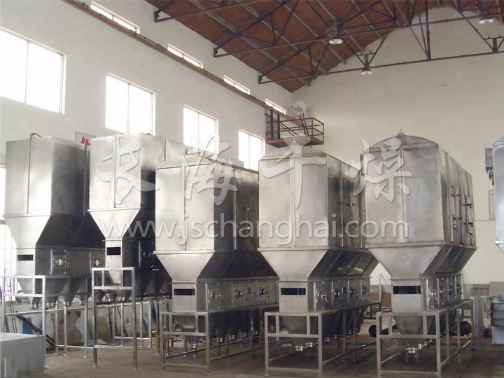 潔凈的熱風(fēng)經(jīng)閥板分配進(jìn)入床體內(nèi),從加料器進(jìn)入的濕物料被熱風(fēng)形成沸騰狀態(tài)。由于熱風(fēng)與物料廣泛接觸,增強(qiáng)了傳熱傳質(zhì)的過(guò)程,因此在較短時(shí)間內(nèi)就可干燥。如用連續(xù)型,物料從床體的一頭進(jìn)入,經(jīng)過(guò)幾十秒至幾分鐘沸騰干燥,自動(dòng)從床體另一頭流出。本設(shè)備一般進(jìn)行負(fù)壓操作。